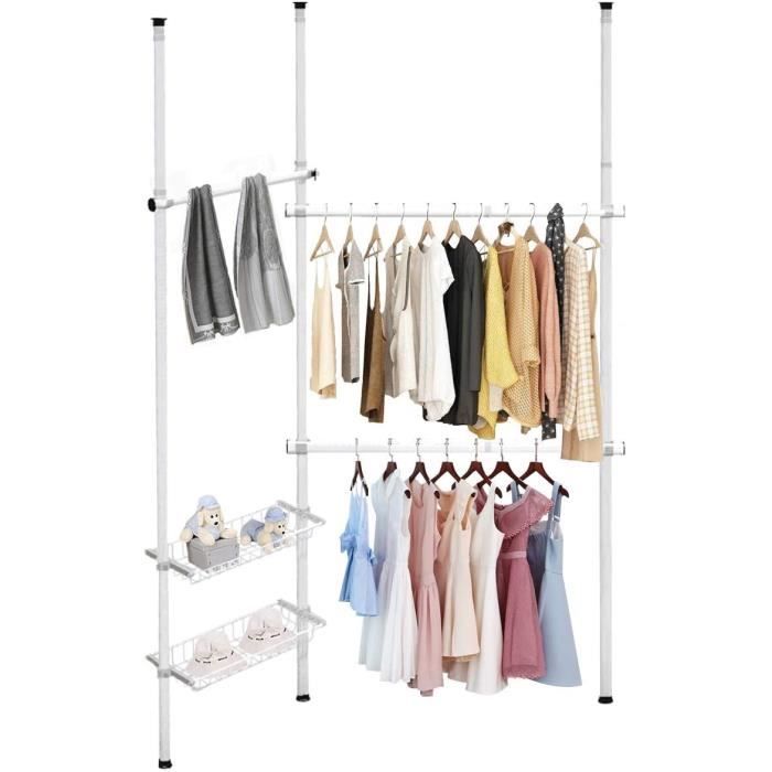 Sobuy Telescope Garde Robe Systeme Herkule Penderie Telescopique 5 Barres De Vetement 2 Paniers Et 1 Vetement Kls04 W Leroy Merlin