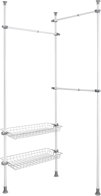 SoBuy KLS04 Télescope Garde-Robe Système Herkule Penderie Télescopique 5 Barres Portant de Vêtement 2 Paniers et 1 Vêtement Fork largeur et hauteur variables. 116-190 x 165-300 x 36 cm. WENKO Système de penderie télescopique Hercules Twin - Système dordre réglable Acier 73-120 x 165-300 x 425 cm Blanc.